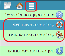 | עמוד קבלת תמיכה מצוות SYE או תמיכה פנים-ארגונית למשתמשי "הייפר" |